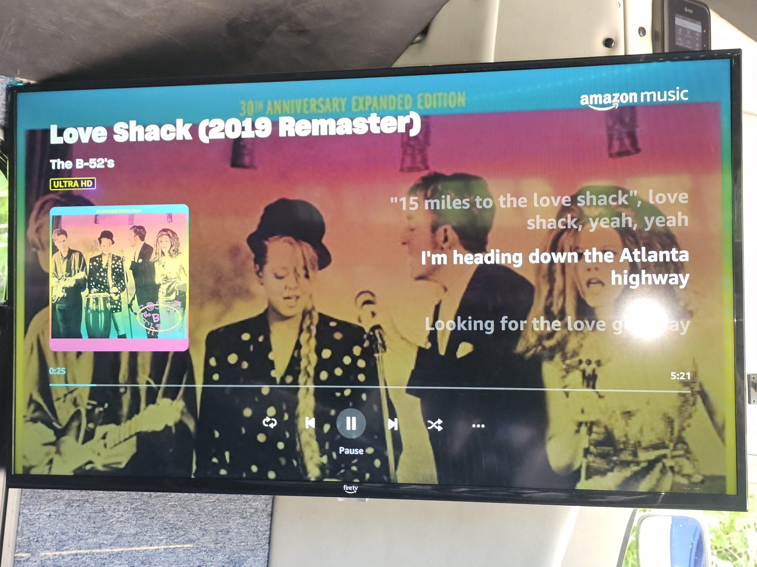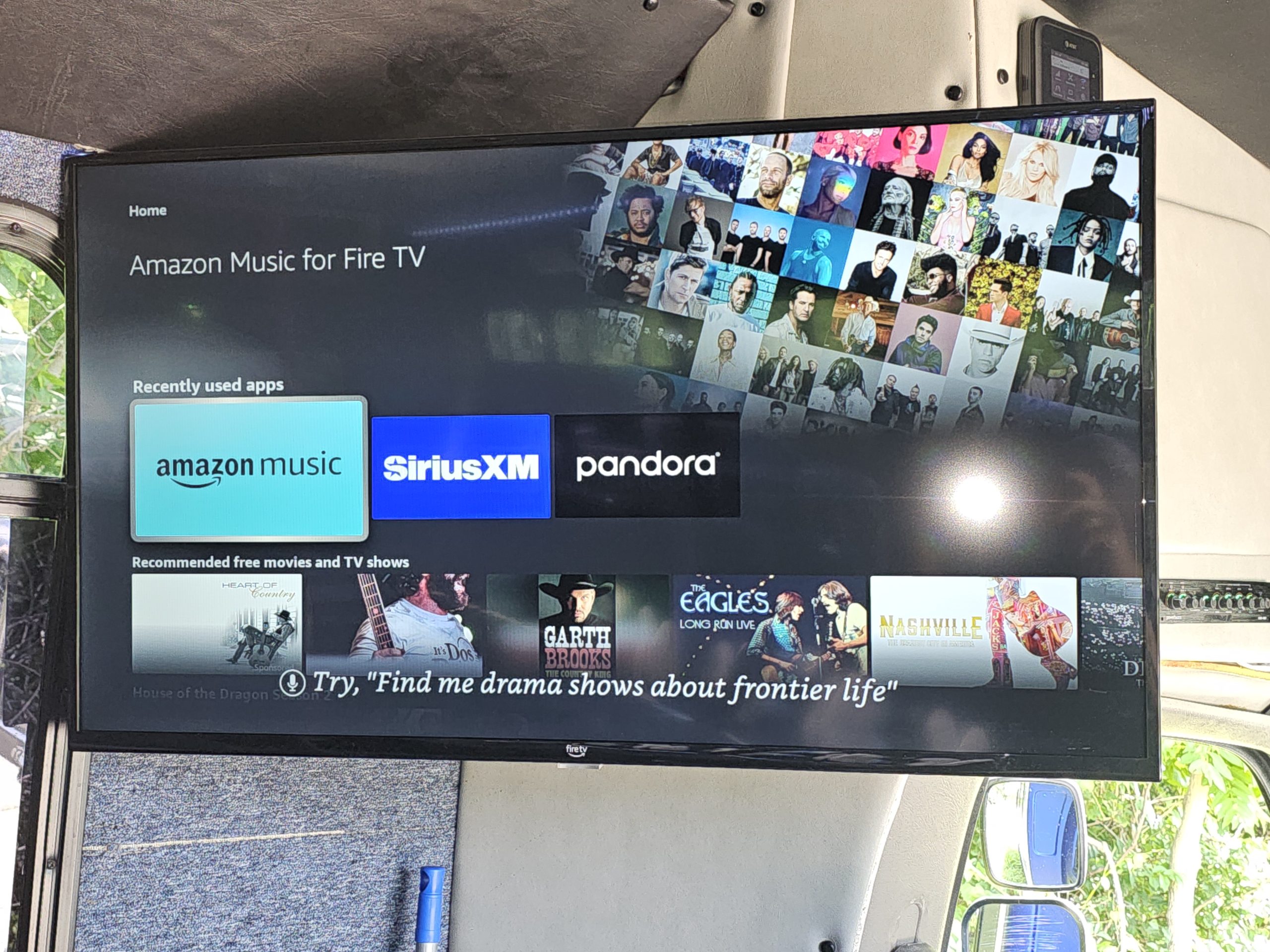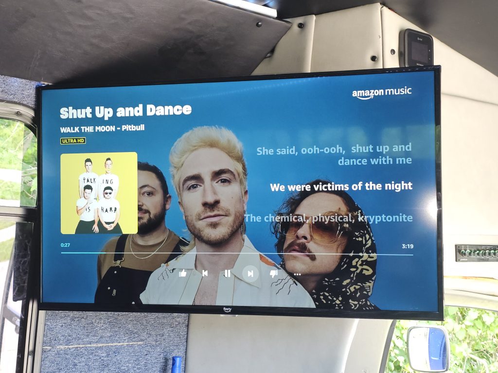Party to your favorite music with our high-quality sound system that delivers booming sound throughout the bus. We feature Unlimited Amazon Music that we can stream, and it shows the lyrics for you to sing along to. We provide Wi-Fi and a Bluetooth option for you to play your own playlist directly!
